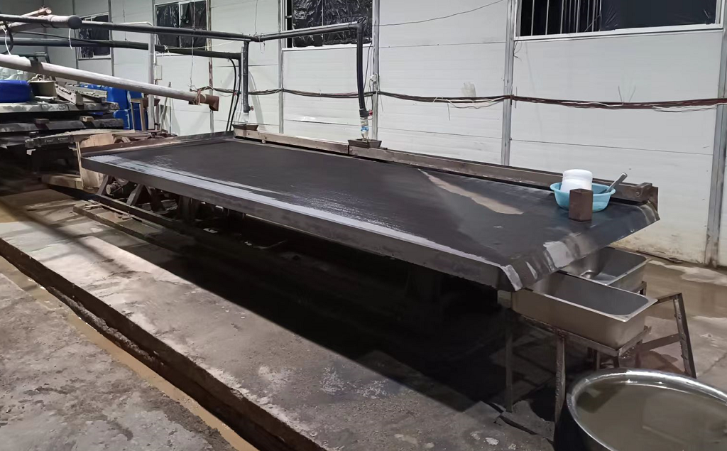 We then remove most of the impurities through a shaky table at our base, and obtain the alluvial gold with higher purity